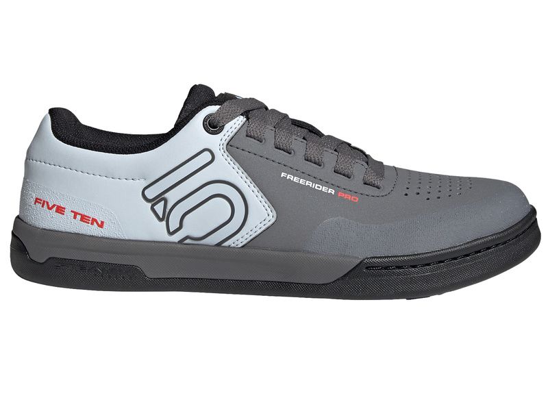 Un maximum de confort tout au long de la journée sur le parcours et en dehors. La chaussure Five Ten Freerider Pro pour pédales plates t'assure accroche et durabilité en all-mountain ou enduro. Son bout résistant aux chocs et sa semelle intermédiaire moyennement rigide assurent une sortie dynamique. Ultra adhérente, la semelle extérieure en caoutchouc signature affiche un motif spécifique pour un contrôle supérieur de la pédale. Ce modèle au look décontracté est idéal au quotidien