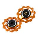 Les galets de dérailleur 11 dents Jockey Wheels de chez Hope sont à la fois légers et résistants. Munis de roulements étanches à faible friction, ils sont ultra résistants aux agressions extérieures grâce aux joints labyrinthe présents au niveau des flasque latérales. Ces galets sont compatibles avec la majorité des dérailleurs 9 et 10 vitesses du marché