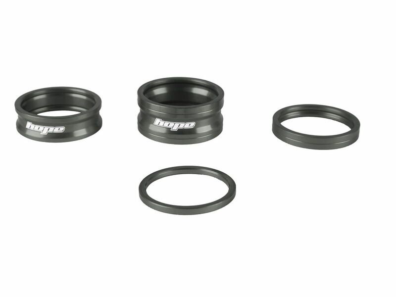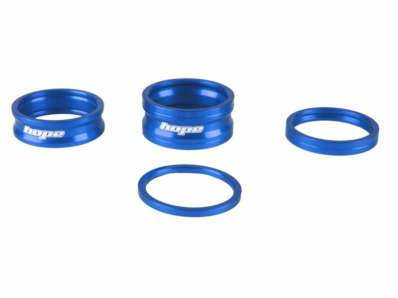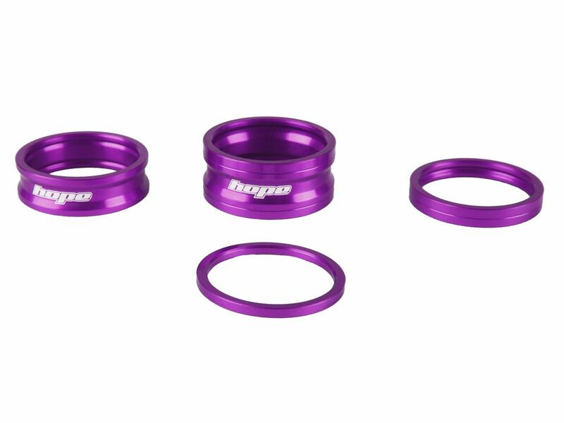 Kit d'entretoises de direction Hope Space Doctor, comprenant une entretoise de 2.5 mm, une de 5 mm, une de 10 mm, et une de 15 mm. Disponible en Bleu, Rouge, Orange, Noir, Argent, Violet et Smoke