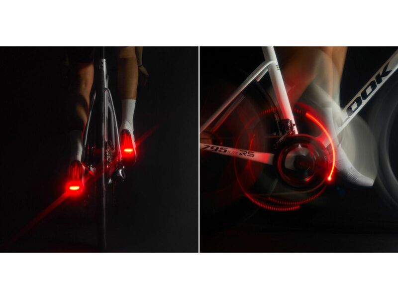 Intégration aérodynamique : Le système lumineux ne pèse que 20g par pédale et s'insère sans outil. Il préserve les lignes fluides de votre machine et ses performances aéro.