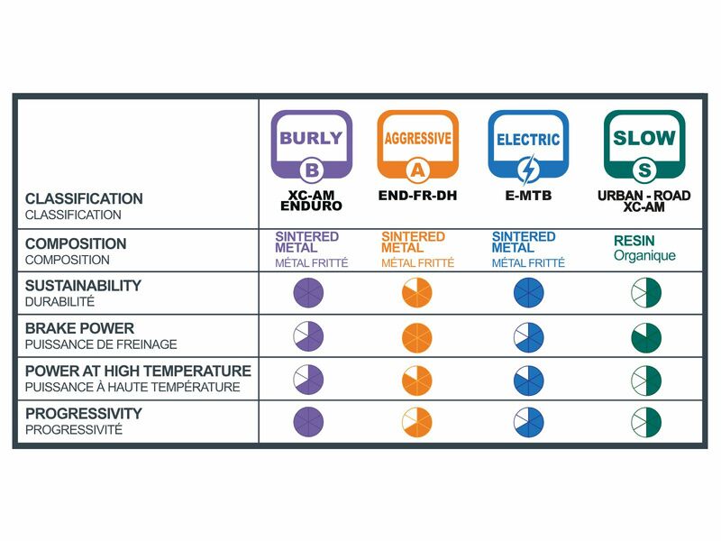 - Plaquettes en métal frité à très haut niveau de performance, développées spécifiquement pour un usage compétition
