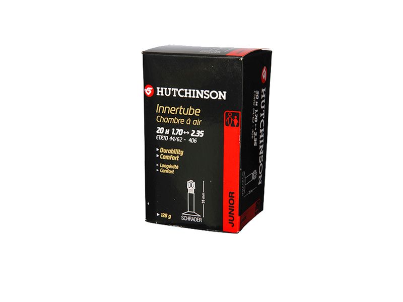 Chambre à air Hutchinson Standard 20" disponible en sections de 1.70 à 2.35 et en valve Shrader. D'une épaisseur de 0.9 mm elle offre une bonne résistance à la crevaison