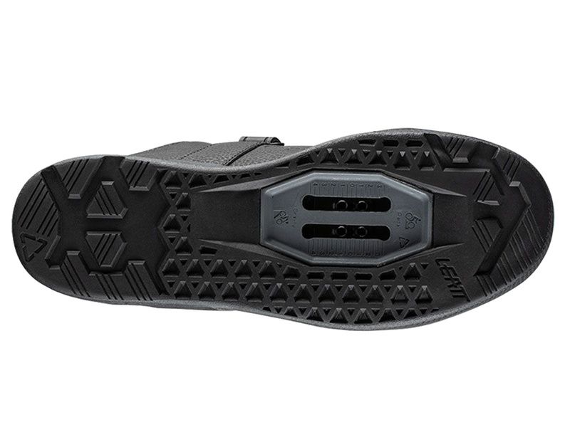 Les chaussures Leatt DBX 4.0 disposent d'une interface SPD de 25 mm offrant une grande ajustabilité et une grande stabilité. La partie de la chaussure en contact avec les manivelles a été réhaussée pour protéger la malléole interne, et les extrémités (talon et orteils) possèdent des renforts rigides. La tige supérieure de la chaussure est microperforée au niveau des orteils afin de laisser le pied respirer. Le serrage se fait via un système de lacets traditionnels renforcés par la présence d'un scratch croisé pour un maintien optimal. La semelle intermédiaire des DBX 4.0 est de type semi rigide et a été spécialement développée pour contrôler les torsions et la flexibilité offrant ainsi un controle parfait de votre vélo mais aussi une bonne flexibilité pour la marche. Enfin, tout le secret de la DBX 4.0 se situe au niveau de sa semelle extérieure dont le composant a été développé par la marque en interne afin d'offrir le meilleur grip en toute saison