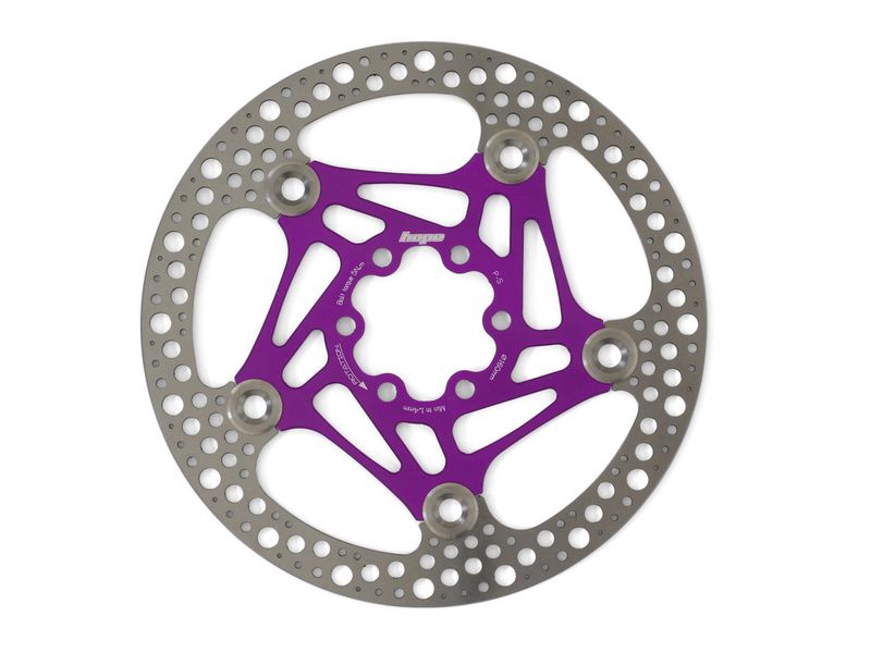 Le disque flottant Hope RX ici dans sa version 6 Trous, est doté d'une conception flottante offrant une meilleure dissipation de chaleur. Sa surface de freinage en acier est traitée thermiquement et rivetée sur étoile aluminium et les flancs du disque sont usinés afin de limiter tout risque de coupure. Il est disponible en 6 couleurs (Noir, Rouge, Argent, Bleu, Orange et Violet) et uniquement en diamètre 160 mm.
